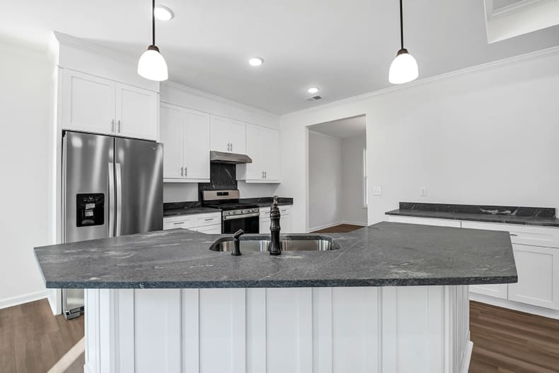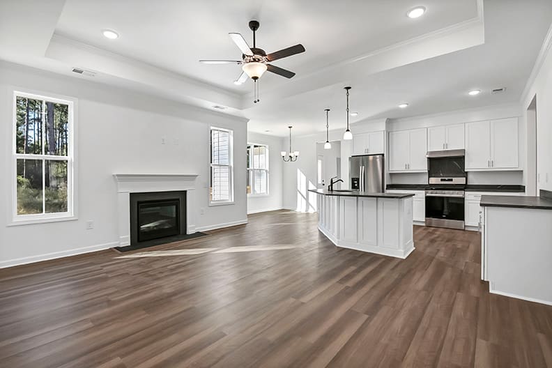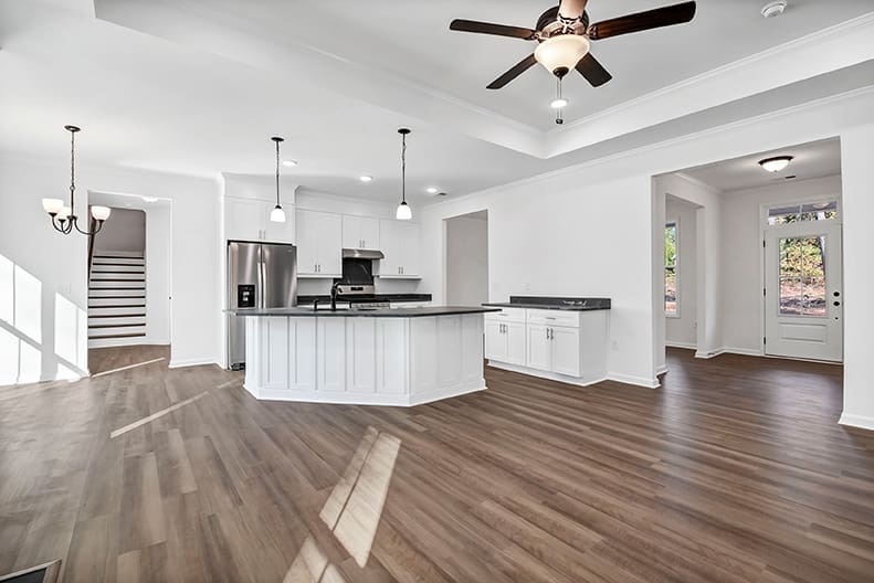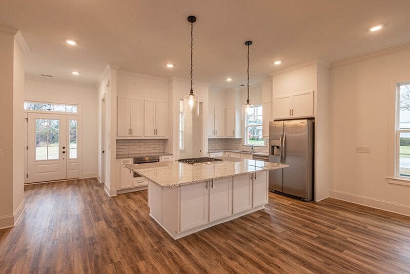 We call this popular one the Elloree. The open floor plan flows well for family time, entertaining and everyday living. Finely appointed with rich hardwood floors, tiled baths, a gourmet kitchen and much more.